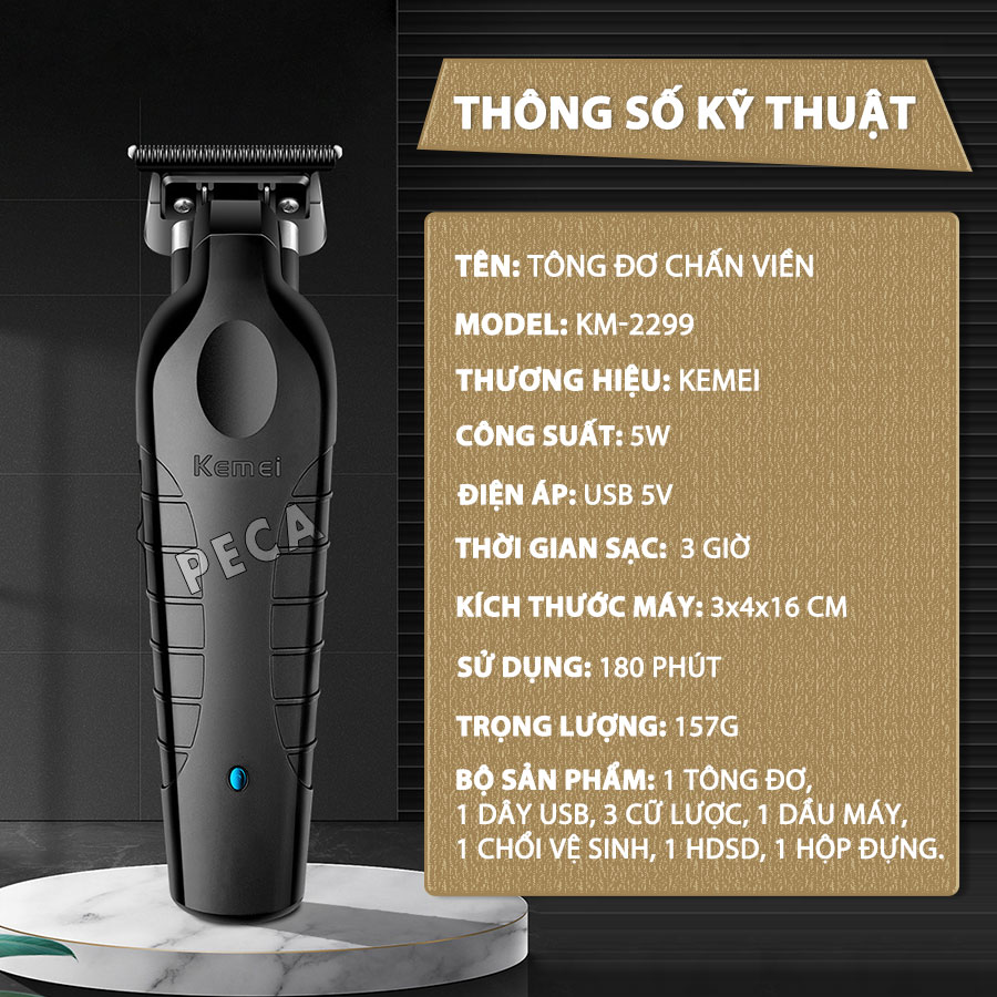 TÔNG ĐƠ CHẤN VIỀN PHIÊN BẢN CAO CẤP KEMEI KM-2299 LƯỠI MẠ CARBON CAO CẤP, CÔNG SUẤT MẠNH 5W - CHÍNH HÃNG