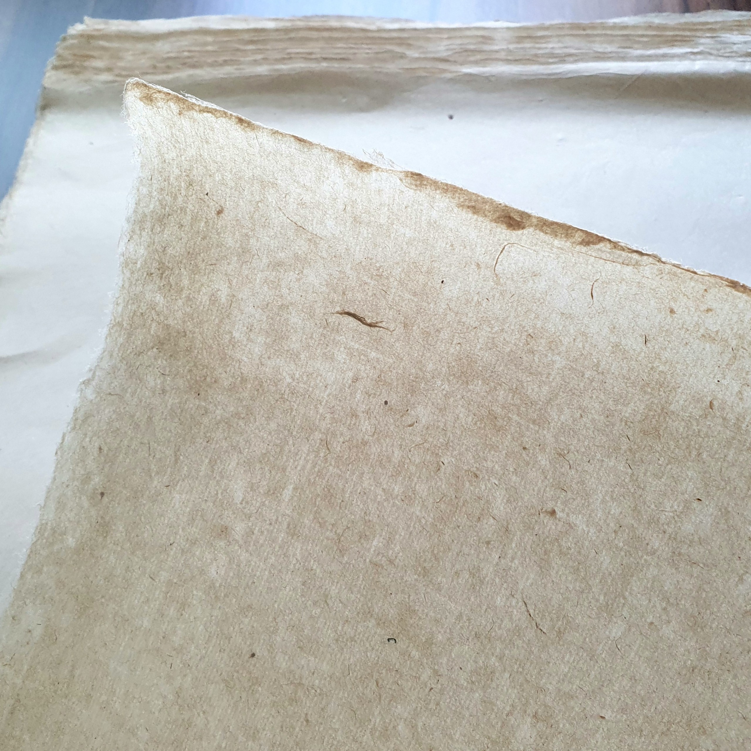 GIẤY DÓ NGUYÊN CHẤT BÓC 2 KHỔ 43x63cm Thông tin sản phẩm: Định lượng: Giấy dó bóc 6-7 (6-7 lớp) Khổ giấy: 43x63cm Màu giấy: nâu nhạt tự nhiên. Đơn vị tính: bán theo