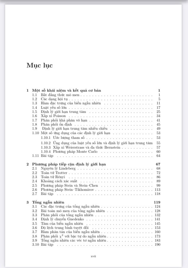 Cuốn sách chuyên khảo này gồm 10 chương. Ngoại trừ 2 chương đầu tiên nhắc lại những kết quả cơ sở và kinh điển của lý thuyết các định lý giới hạn, cùng một số phương pháp và phép tiếp cận tới các định lý giới hạn, các chương còn lại của cuốn sách đều được viết dựa trên các kết quả nghiên cứu của tác giả và cộng sự trong thời gian từ năm 1983 tới năm 2021, rất gần với một số vấn đề cơ bản trong nghiên cứu tổng ngẫu nhiên của nhiều tác giả khác mà công bố của họ có mặt trong danh sách "Tài liệu tham khảo" ở cuối cuốn sách. Một số vấn đề mở lý thú cũng được đặt ra trong cuốn sách dưới dạng các chú ý thường xuất hiện cuối mỗi chương hoặc trong các bài tập được đề xuất.