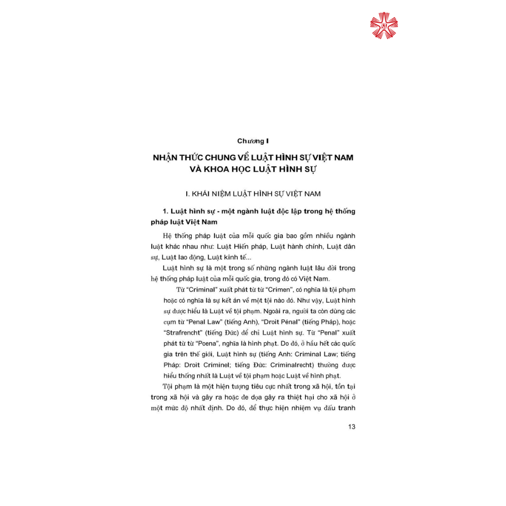 So với lần xuất bản trước, tác giả đã giảm bớt bốn chương và rút gọn một số nội dung, đồng thời cập nhật thêm các kiến thức mới của khoa học Luật Hình sự và đặc biệt, bổ sung thêm chương mới “Sơ đồ tư duy trong Luật Hình sự Việt Nam và một số vấn đề cơ bản về định tội danh” để phục vụ việc nghiên cứu, tìm hiểu, giảng dạy, học tập, và áp dụng pháp luật hình sự, nắm vững quá trình xuyên suốt từ khi chủ thể thực hiện hành vi nguy hiểm cho xã hội là tội phạm đến khi được xóa án tích và khả liên quan đến trách nhiệm hình sự trong quá trình này.