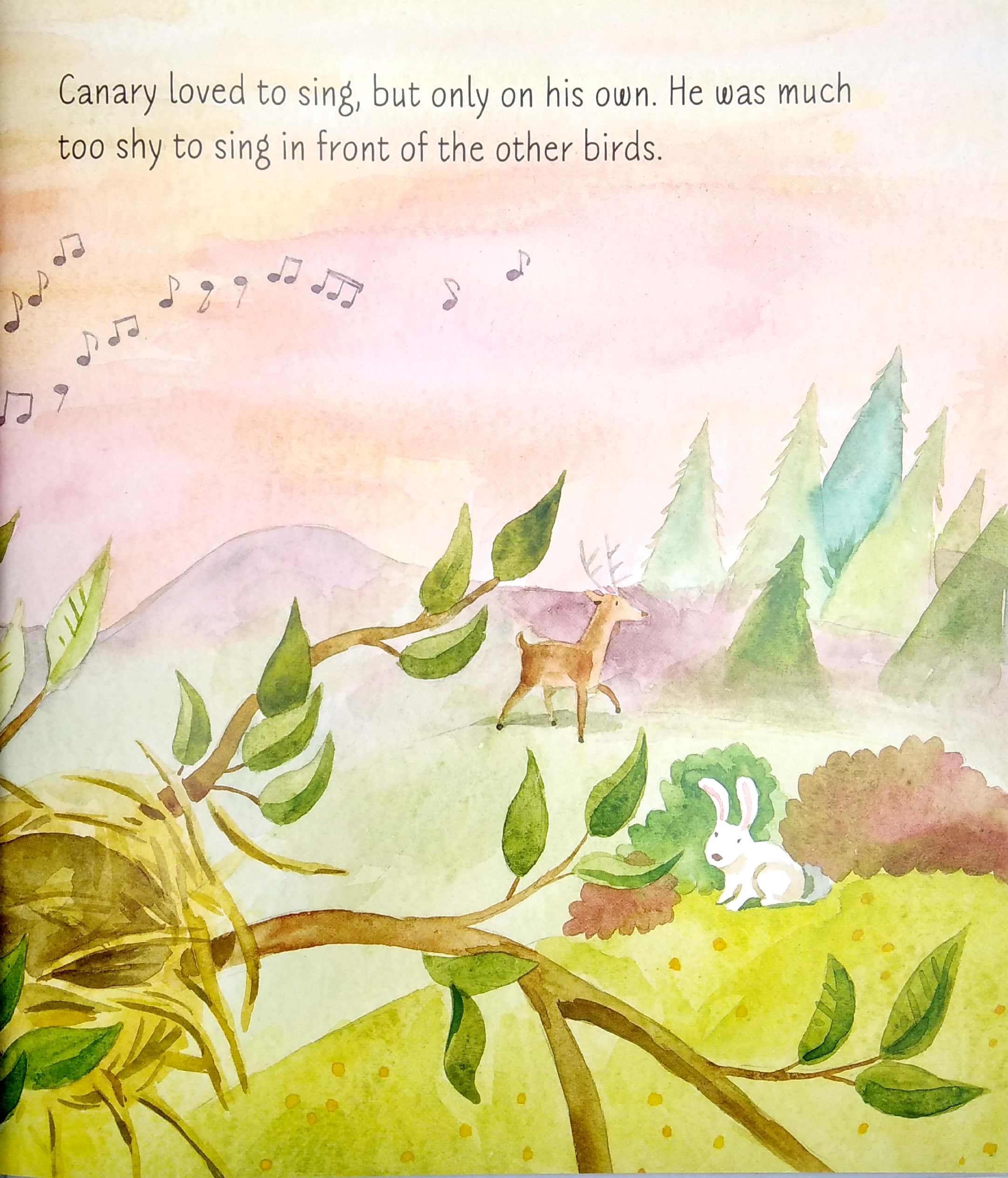 All of Canary’s friends have something special about them: Hummingbird can hover midair, Ostrich can run super-fast and Peacock has a beautiful tail. Canary loves to sing, but only when he’s by himself. He could never sing in front of his friends! Can Canary show everyone what makes him special, or is he simply too shy to sing?