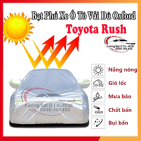 ✨[TOYOTA RUSH] Bạt Phủ Ô Tô Vải Dù Oxford, Tráng Nhôm Cao Cấp, Áo Trùm Bảo Vệ Xe TOYOTA RUSH, Bạc Phủ Trùm Chống Nóng Chống Mưa, Chống Xước Xe, Bạt Của Xưởng Được May Theo Kích Cỡ Xe, Cam Kết Vừa Xe, Bền Và Đẹp Tới 2 Năm