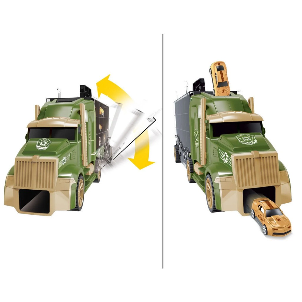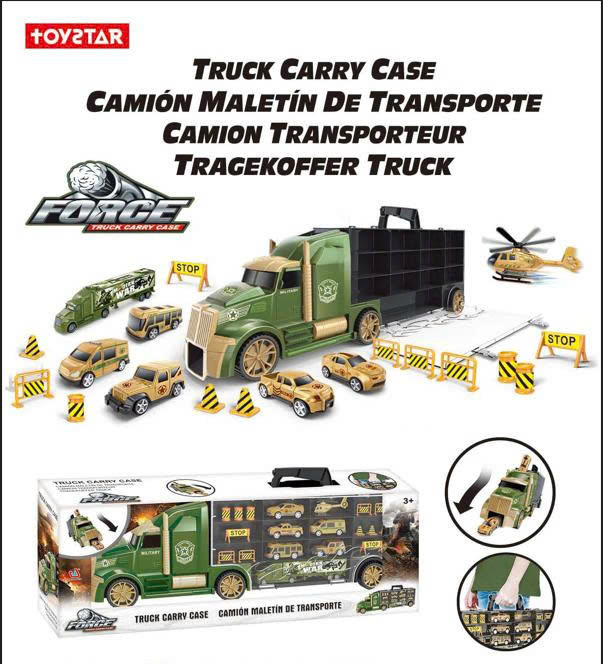✨TOYSTAR - 666-05H Mô hình Bộ xe tải vận chuyển quân sự gồm 6 ô tô, 1 máy bay, 12 biển báo giao thông