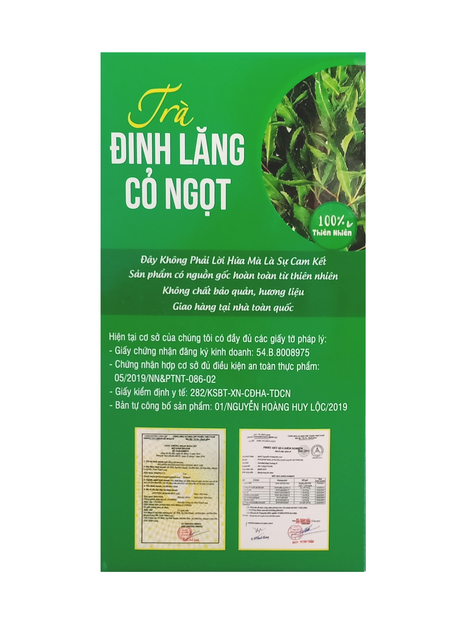 Nguyên liệu: 100% lá Đinh lăng. Không sử dụng hóa chất và chất bảo quản, an toàn cho sức khỏe.