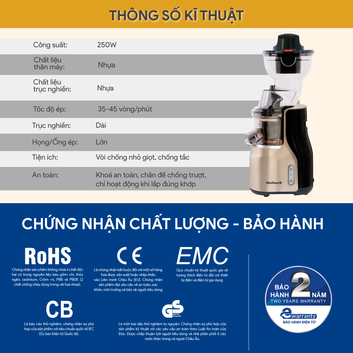 MÁY ÉP CHẬM CAO CẤP BLUESTONE SJB-6578 - TÂN BINH ÉP KIỆT TRONG LÒNG NGƯỜI TIÊU DÙNG