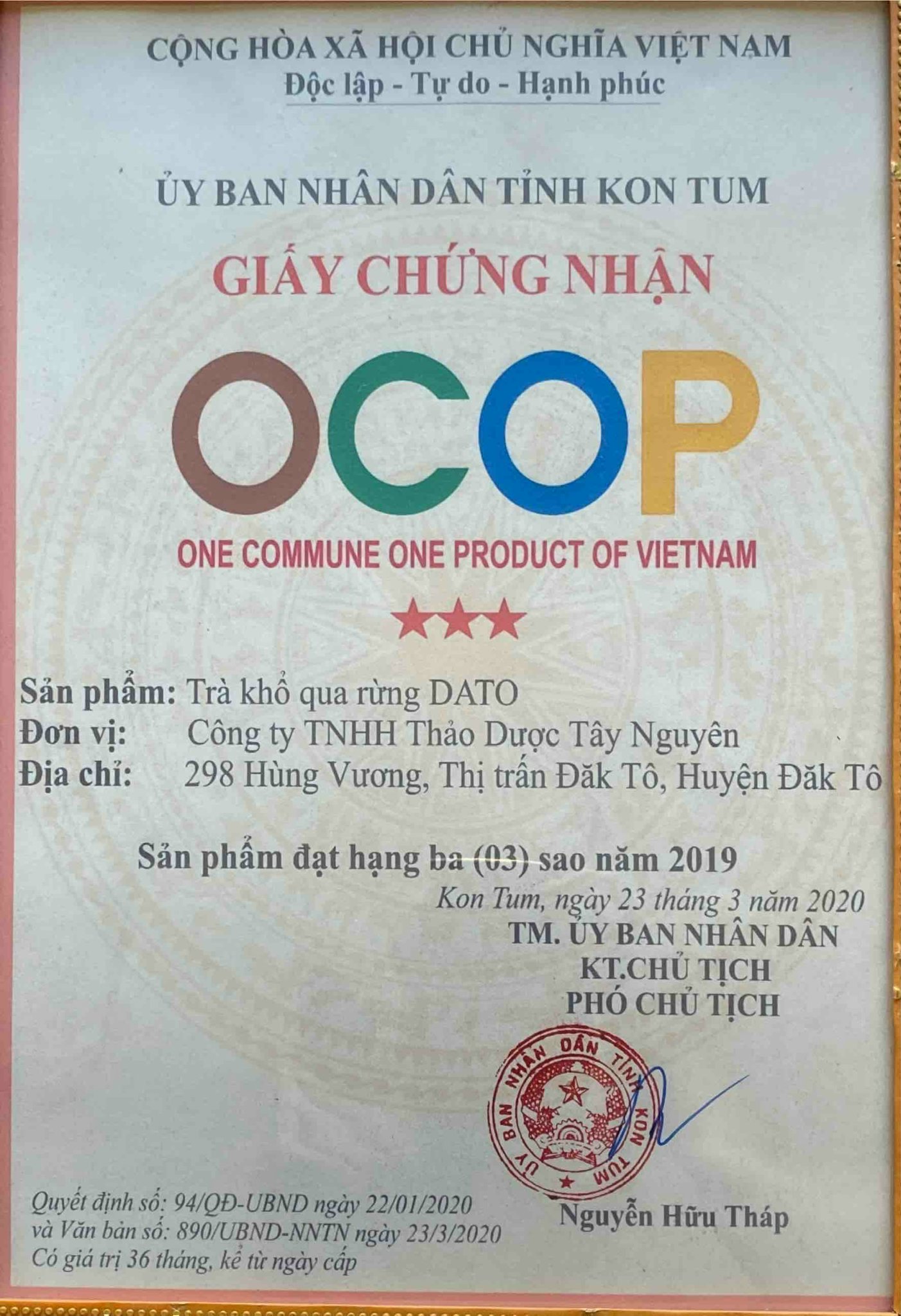 1. THÔNG TIN SẢN PHẨM: - Xuất xứ: Việt Nam - Khối lượng: 20 gói túi lọc x 10gr/gói - Ngày sản xuất: In trên bao bì - Hạn sử dụng: 12 tháng - Đạt