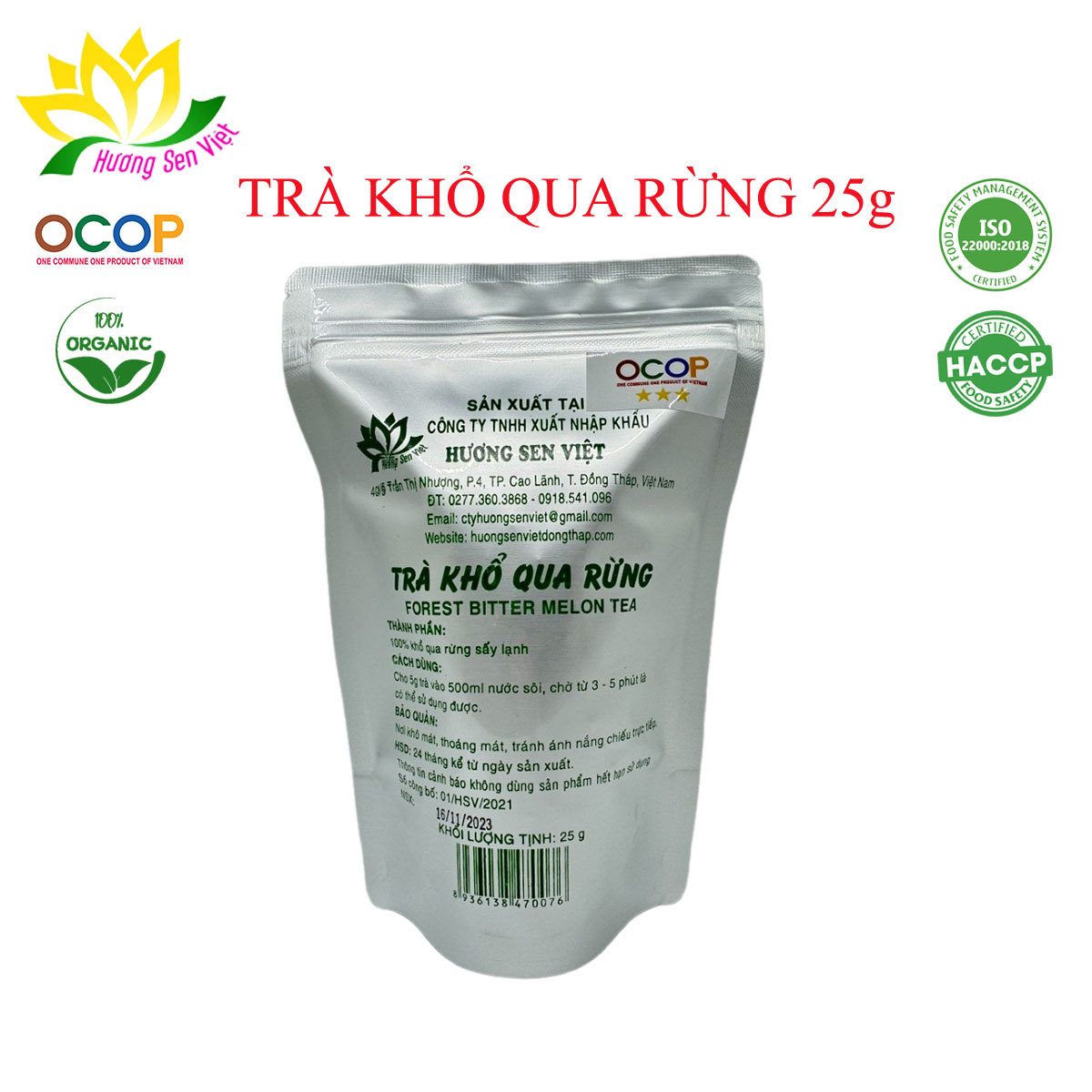 Trà Khổ qua rừng (còn gọi là trà mướp đắng rừng) được chế biến từ Khổ qua rừng tự nhiên. Khổ qua rừng được sử dụng công nghệ sấy lạnh giúp giữ được màu sắc
