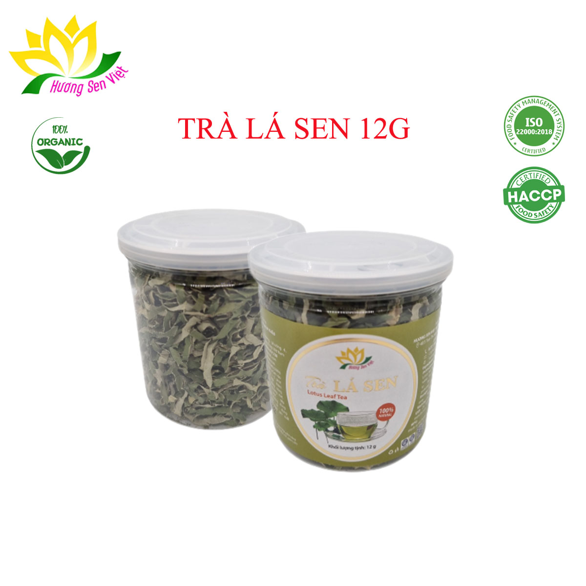 Thành phần: Lá sen tươi 100% sấy lạnh. Công dụng: – Giảm căng thẳng, mệt mỏi; giúp an thần, tạo giấc ngủ sâu – Giúp hạ mỡ máu, giảm mỡ trong cơ thể, phòng ngừa và hỗ trợ điều trị chứng bệnh béo phì – Hỗ trợ phòng trị chảy máu não và các biến chứng kèm theo ở bệnh nhân tăng huyết áp – Ngăn ngừa xơ vữa động mạch, giúp phòng ngừa và hỗ trợ điều trị bệnh mạch vành tim và viêm túi mật. – Làm mát gan, tăng cường chức năng gan, hỗ trợ điều trị người mắc bệnh gan nhiễm mỡ. Hướng dẫn bảo quản: Nơi khô ráo, thoáng mát và tránh ánh nắng chiếu trực tiếp Hướng dẫn sử dụng: Cho 2 - 3 gam Trà Lá Sen vào 200 ml nước sôi, chờ từ 3 - 5 phút là dùng được. Có thể thêm đường, đá lạnh hoặc dùng nóng. Thời hạn sử dụng sản phẩm: 24 tháng kể từ ngày sản xuất