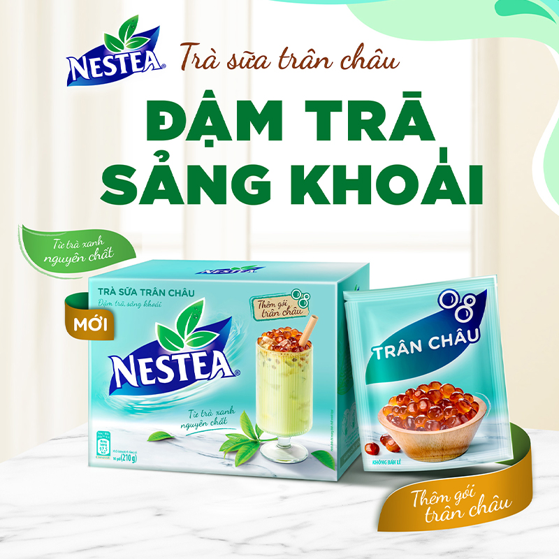 Mua tại TiktokBỘ SẢN PHẨM GỒM: Trà sữa NESTEA trân châu hộp 5 gói x 17 g THÔNG TIN CHI TIẾT NESTEA nay tự hào giới thiệu sản phẩm Trà sữa NESTEA Trân châu - là sự kết hợp tinh tế giữa vị trà xanh nguyên chất đậm đà quyện cùng vị sữa hài hòa dịu nhẹ, phù hợp với thị hiếu người tiêu dùng; thưởng thức cùng với trân châu dai giòn khó cưỡng - hứa hẹn mang đến cho bạn cảm giác sảng khoái khó quên bất cứ khi nào bạn muốn mà chẳng cần đi xa. ĐẶC ĐIỂM NỔI BẬT