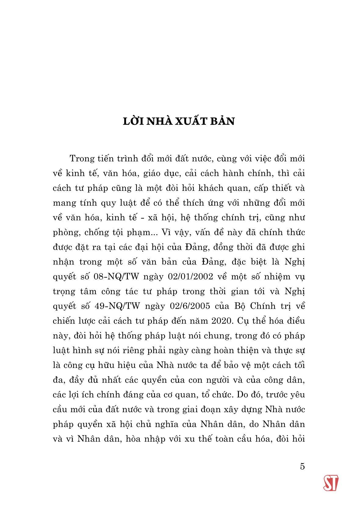 Nhằm đáp ứng nhu cầu tìm hiểu, nghiên cứu Bộ luật Hình sự của bạn đọc nói chung, của cán bộ làm công tác pháp luật, cán bộ nghiên cứu, giảng dạy pháp luật và