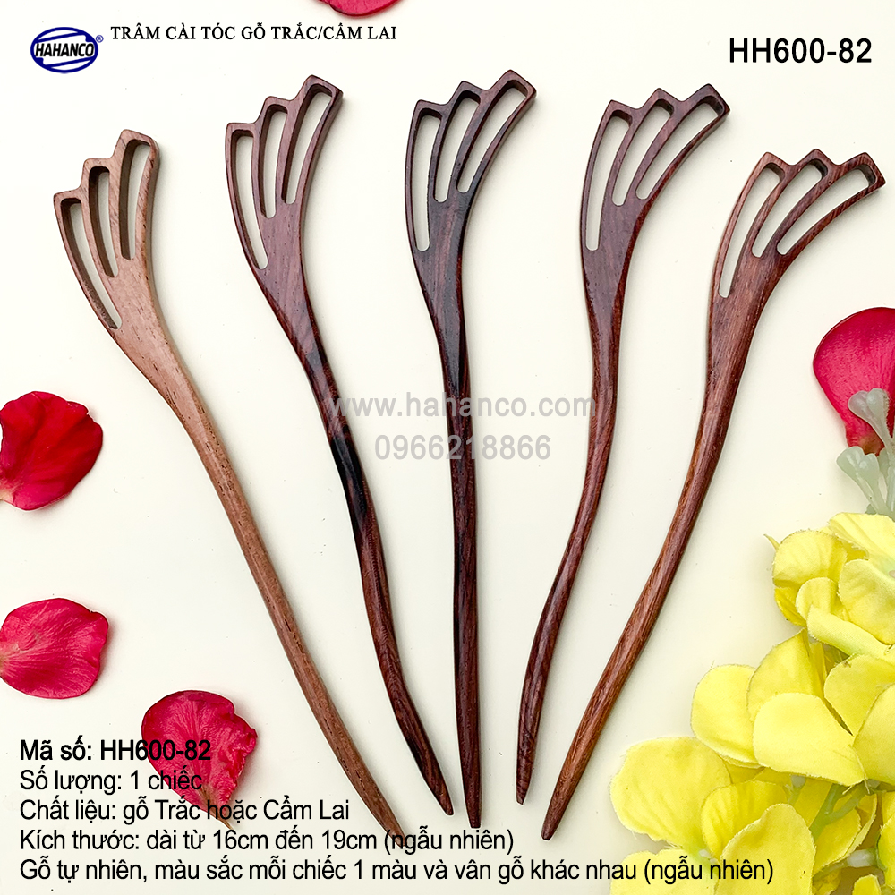 - Sản phẩm châm cài tóc được chạm khắc tinh sảo chỉ giá cả hợp lý Quý khách chú ý: hiện nay rất nhiều cơ sở bán sản phẩm gỗ Cẩm giả, kém chất lượng, hàng giả thường được làm bằng gỗ tạp và ngâm hóa chất nhuộm màu rất độc hại, nhưng vẫn ghi là gỗ Cẩm để đánh lừa người tiêu dùng. Để đảm bảo quyền lợi hãy chọn mua đúng sản phẩm do CTy HAHANCO sản xuất
