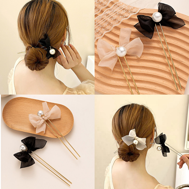 ✨Trâm cài tóc chữ U trâm búi tóc cài tóc nơ ngọc trai nữ tính Hàn Quốc