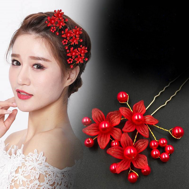 Trâm cài tóc cô dâu thiết kế ngọc trai và hoa 5 canh mềm mại, nữ tính. Tôn lên vẻ đẹp cho mái tóc xinh. Thích hợp trang điểm, make up cô dâu, trang điểm