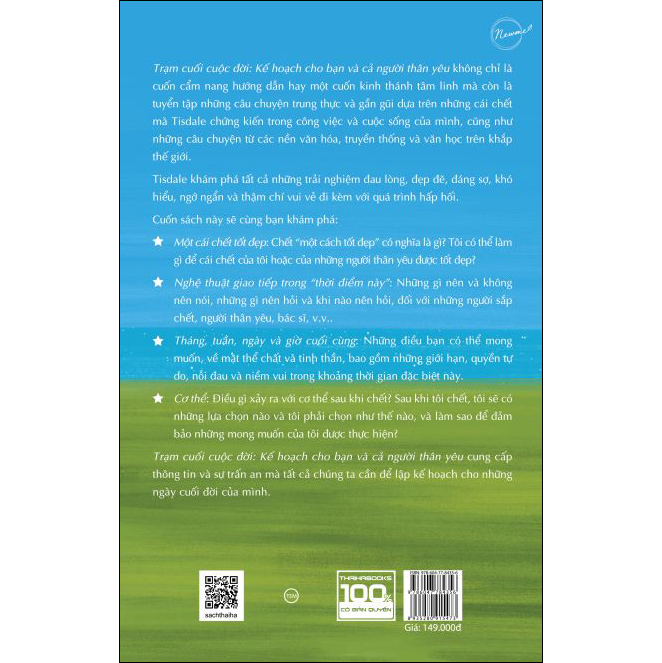 “Trạm cuối cuộc đời: Kế hoạch cho bạn và cả người thân yêu” không chỉ là cuốn cẩm nang hướng dẫn hay một cuốn kinh thánh tâm linh mà còn là tuyển tập những câu chuyện trung thực và gần gũi dựa trên những cái chết mà Tisdale chứng kiến trong công việc và cuộc sống của mình, cũng như những câu chuyện từ các nền văn hóa, truyền thống và văn học trên khắp thế giới.
