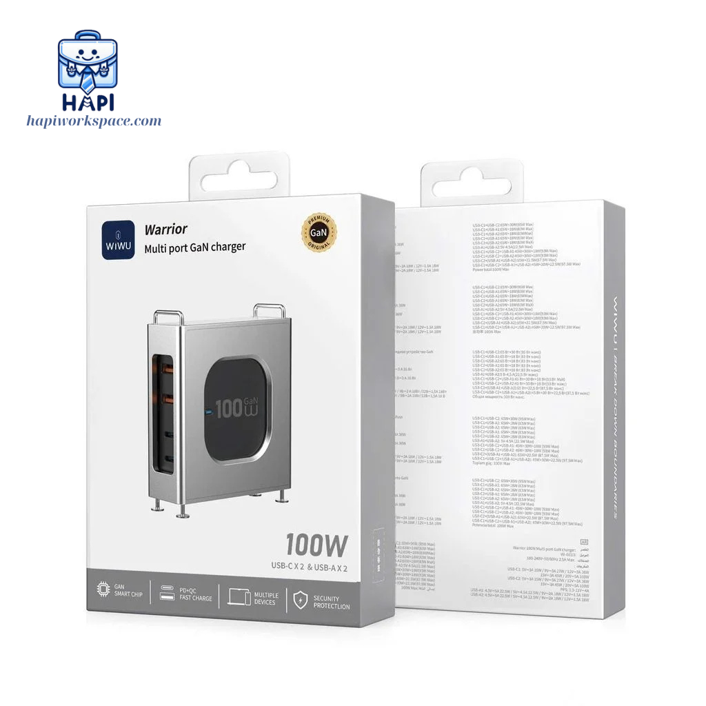 - Công suất tối đa: 100W - Đầu vào nguồn: AC 100-240V 50/60Hz 2.4A - Được hỗ trợ bởi Công nghệ Gallium Nitride (GaN) - Thiết kế tinh xảo, liền mạch - Bảo vệ quá