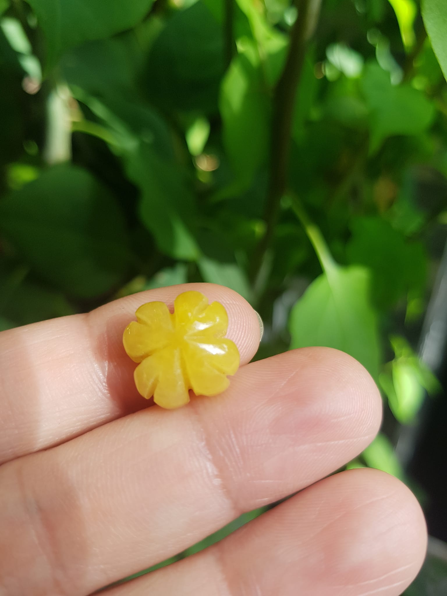 ✨Trang sức phối vòng tay Bông Hoa Cỏ 4 Lá Đá cẩm thạch VÀNG ANH ĐẬM đẹp Size bông 14mm x 6mm x lỗ đk 2mm Nữ mệnh Kim Thổ Thủy phối với Vòng đeo tay, làm mặt dây chuyền, mặt nhẫn đeo ạ