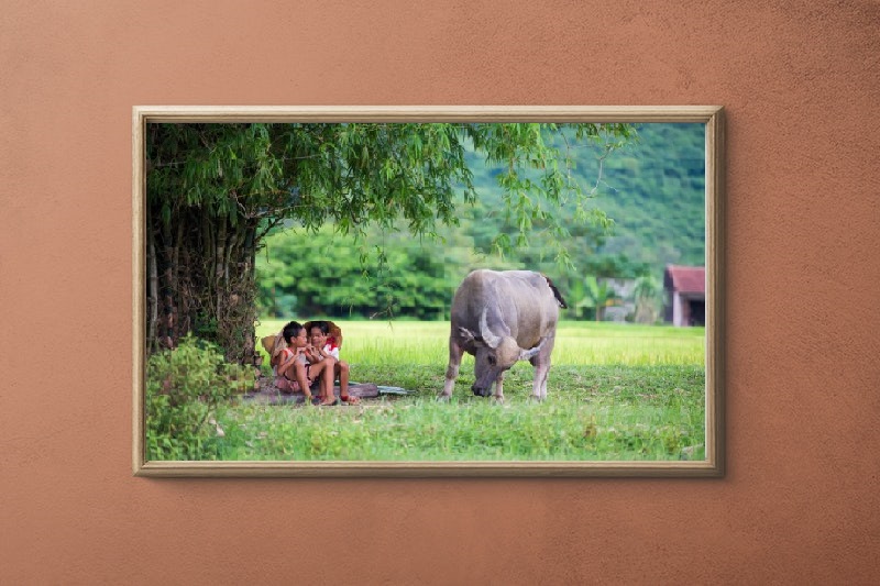 ✨Tranh CANVAS Treo Tường CHỦ ĐỀ QUÊ HƯƠNG, CHĂN TRÂU, Tranh canvas thiên nhiên, có khung kèm, treo phòng khách, phòng ăn,, phong cách hiện đại PVP-PC06