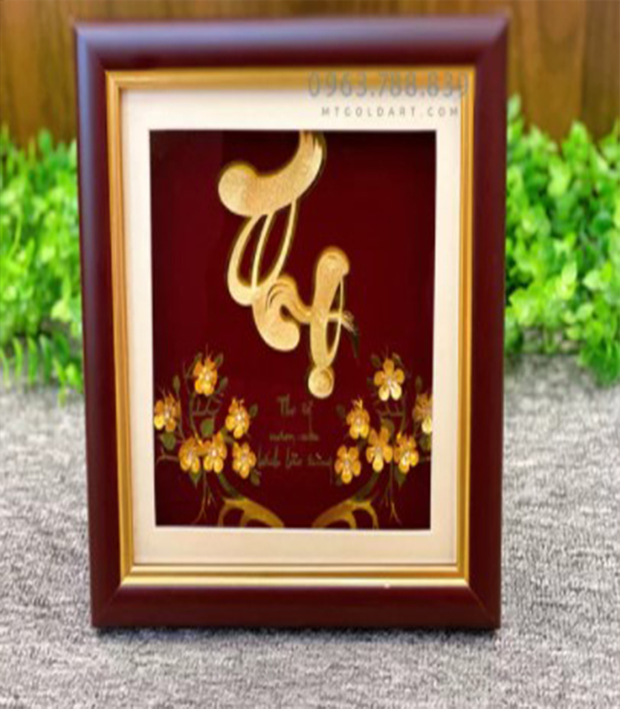 Tranh chữ Phúc mạ vàng để bàn được cách điệu theo lối viết thư pháp rất tinh xảo, độc đáo. Đây là Quà vàng cao cấp nằm trong bộ tranh Phúc Lộc Thọ mạ vàng được