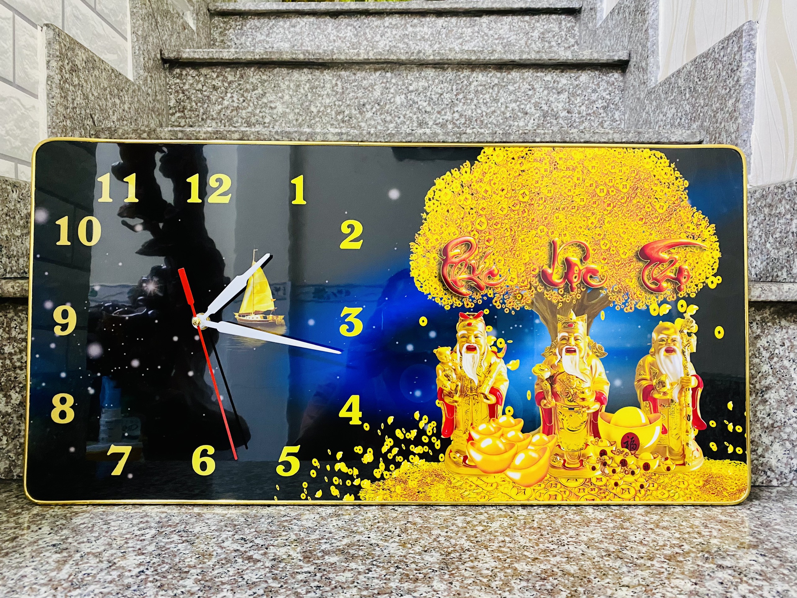 Tranh đồng hồ tráng gương phúc lộc thọ Tranh đồng hồ tráng gương phúc lộc thọ sẽ góp phần làm cho không gian nhà bạn trở nên sinh sinh động và tươi mới hơn. Ưu điểm và ý nghĩa của tranh đồng hồ: Tranh đồng hồ tráng gương rất phong phú về chủ đề, màu sắc, chất liệu, ý nghĩa. Bên cạnh đó, tranh đồng hồ sẽ có những loại tranh phù hợp riêng, xét về góc độ thẩm mỹ, tranh dồng hồ cho phòng khách,phòng ngủ,phòng bếp sẽ gồm những bức tranh về phong cảnh, thiên nhiên, cảnh quan tươi đẹp. Tùy vào diện tích và thiết kế của căn phòng. Tranh đồng hồ không chỉ để xem giờ mà còn giúp không gian căn phòng thư thái,dễ chịu,giúp cho căn nhà của bạn tràn đầy sức sống,tinh thần thoải mái sau những giờ làm việc căng thẳng.  Chất liệu và kích thước: Tranh tráng gương được làm từ lọai giấy cao cấp,in ảnh chất lượng cao,không bị nhòe ảnh hay bể ảnh,cán lớp mica tráng gương bóng bảo vệ chịu nước và chống bay màu tốt,đem lại cho bạn một sản phẩm không chỉ độc đáo về hình ảnh mà còn tốt về chất lượng.Sản phẩm được làm từ những lọai gỗ mịn cao cấp nhập khẩu từ nước ngoài (gỗ MDF), phủ melamine có tính chống trầy cao,không biến dạng. Kích thước chi tiết: 30x60cm 40x80cm