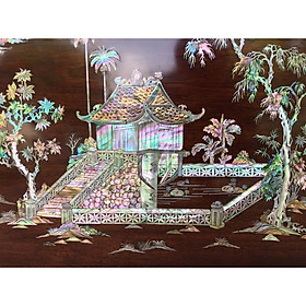 _ Tranh khảm trai ốc chùa một cột được làm bằng chất liệu gỗ gụ lào và khảm ốc kết hợp với vở bào ngư xanh đỏ tự nhiên 100% _ Kích thước ngang 41