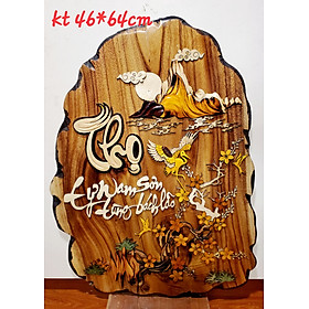 Tranh gỗ thư pháp Chất liệu tranh được cắt ghép thủ công từ nhiều loại gỗ quý tự nhiên tạo lên bức tranh thư pháp rất nghệ thuật. Kích thước tranh ghi trên ảnh