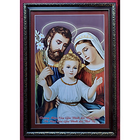 Ảnh gốc in dầu Gia đình thánh gia Chất liệu tranh in dầu trên màng lụa cao cấp được cán phủ lớp màng PE bảo vệ bề mặt tranh, dán ép trên tấm pormex dày