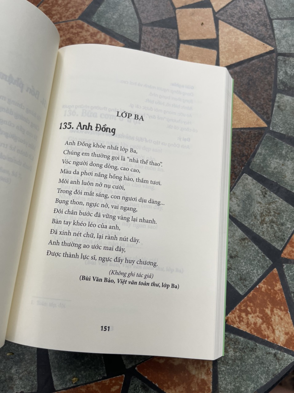 Sách này là BỔN CŨ SOẠN LẠI 2, được biên soạn tiếp nối cho tập sách BỔN CŨ SOẠN LẠI: NHỮNG BÀI HỌC THUỘC LÒNG TÂN QUỐC VĂN GIÁO KHOA THƯ đã do NXB Tổng hợp TPHCM ấn hành năm 2019, với 263 bài học thuộc lòng các lớp Ba, Nhì (lớp Bốn bây giờ), Nhất (lớp Năm bây giờ) của bậc tiểu học giai đoạn trước năm 1975, được nhiều độc giả hưởng ứng.