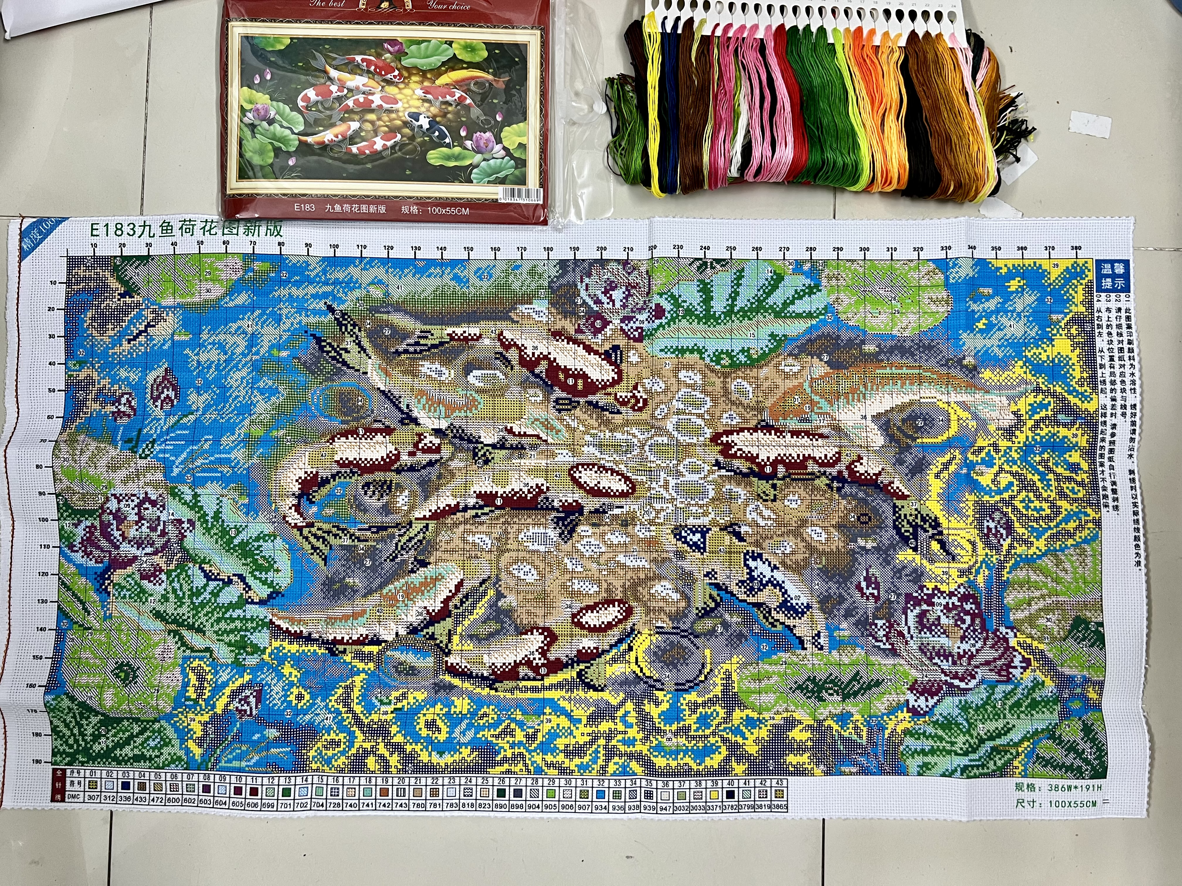 Review tranh thêu chữ thập cửu ngư quần hội E198 (100x55)-cross Stitch