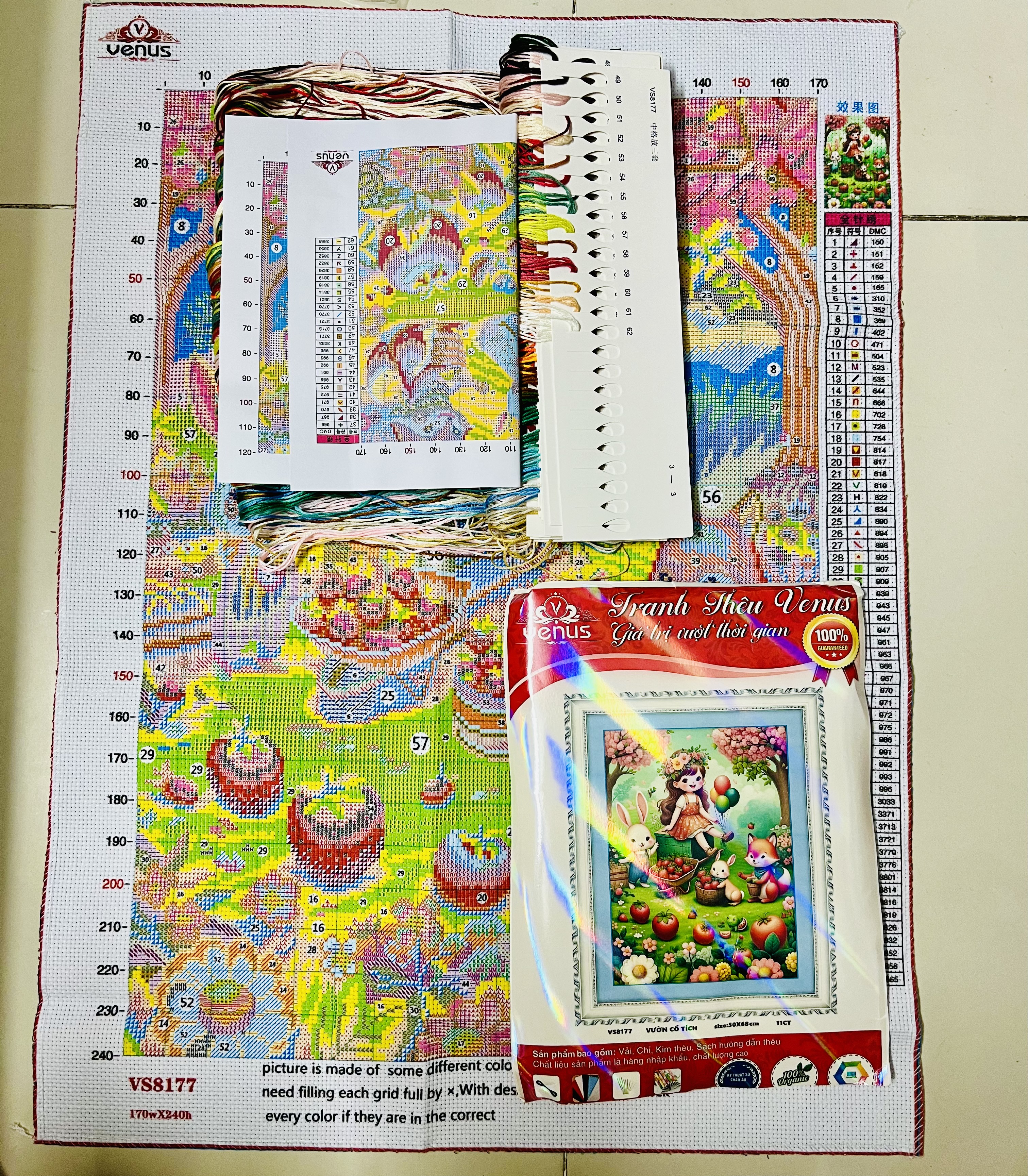 Thể loại: Tranh thêu chữ thập - sản phẩm này là tranh chưa thêu. Sản phẩm này là tranh của hãng Venus rất đẹp và bền màu. Vị trí khách cần thêu trên tranh: thêu