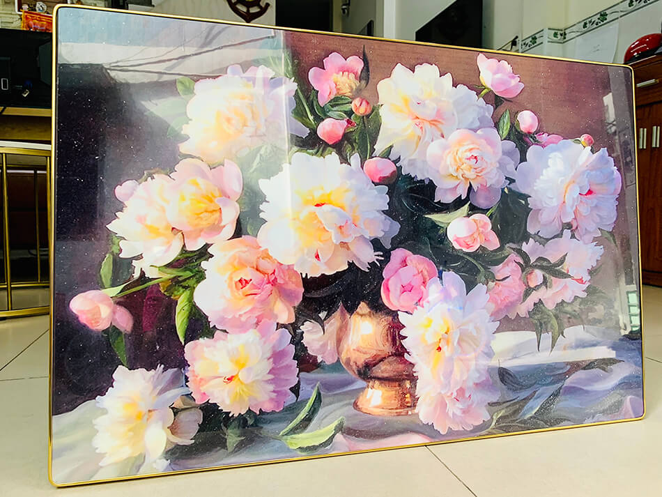 Sản phẩm cao cấp, bề mặt tranh bóng mịn, sáng đẹp có thể lau chùi dễ dàng được tích hợp lớp viền xung quanh bức tranh tạo độ an toàn ,giảm hư hại khi rơi rớt, hiệu ứng hình ảnh sâu, sắc nét tạo nên sự sang trọng cho không gian, chống ẩm mốc, mối mọt và cũng như có độ bền lâu theo thời gian.