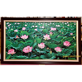 TRanh vẽ sơn dầu - Đàm Sen Chất liệu: Vẽ sơn dầu trên vải toan chuyên dụng. Khung tranh màu nâu composite nhẹ, chống mối mọt, bền đẹp Kích thước phủ khung 100*170cm
