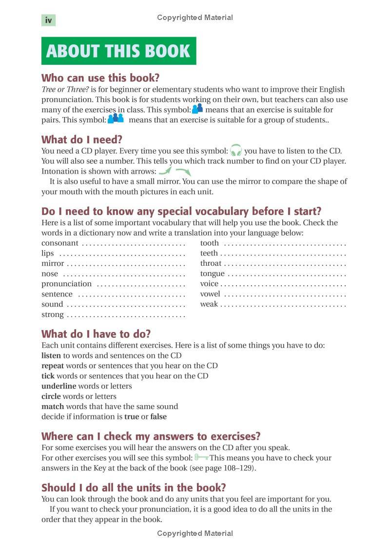 Enjoyable pronunciation practice of English sounds, word stress and intonation for beginner-level students. Now in full colour and with updated artwork, this revised edition of Tree or Three? retains its simplicity and straightforward syllabus.