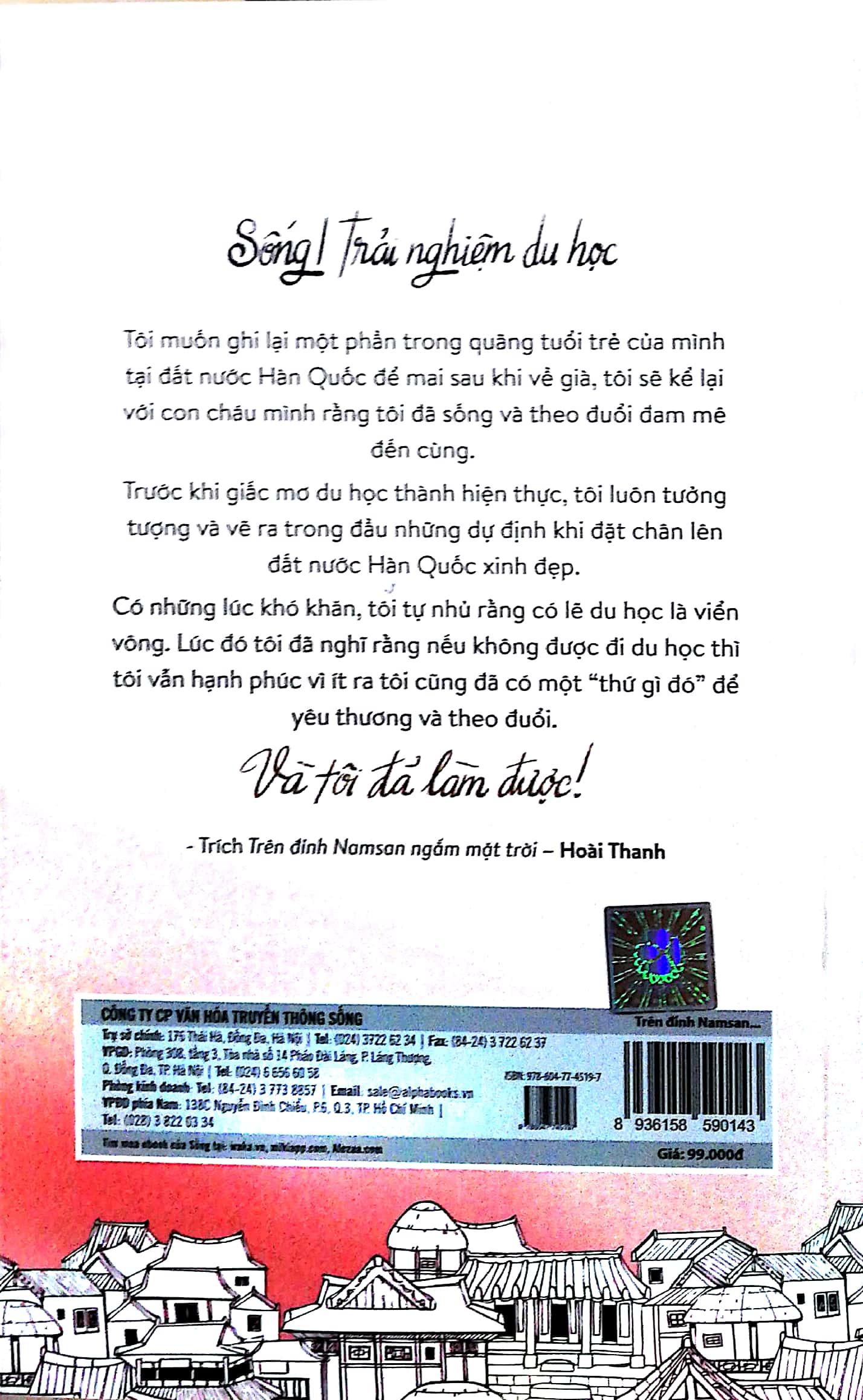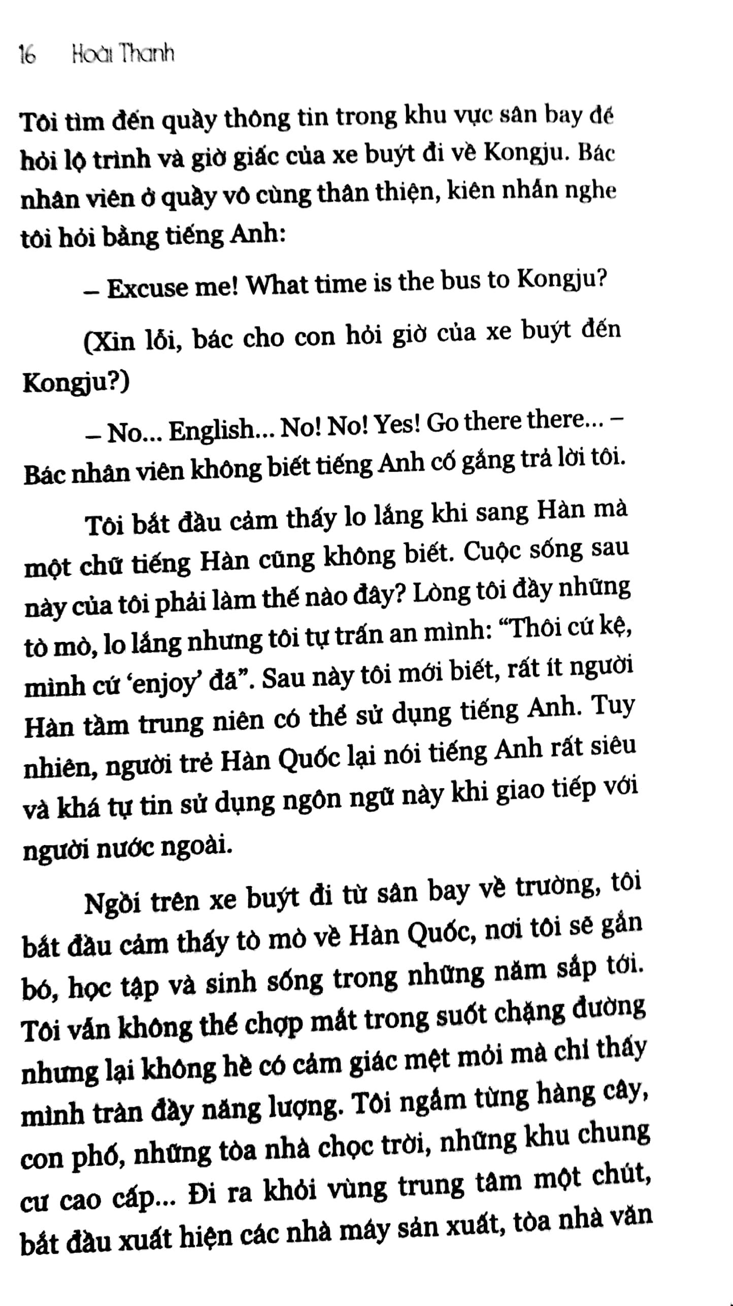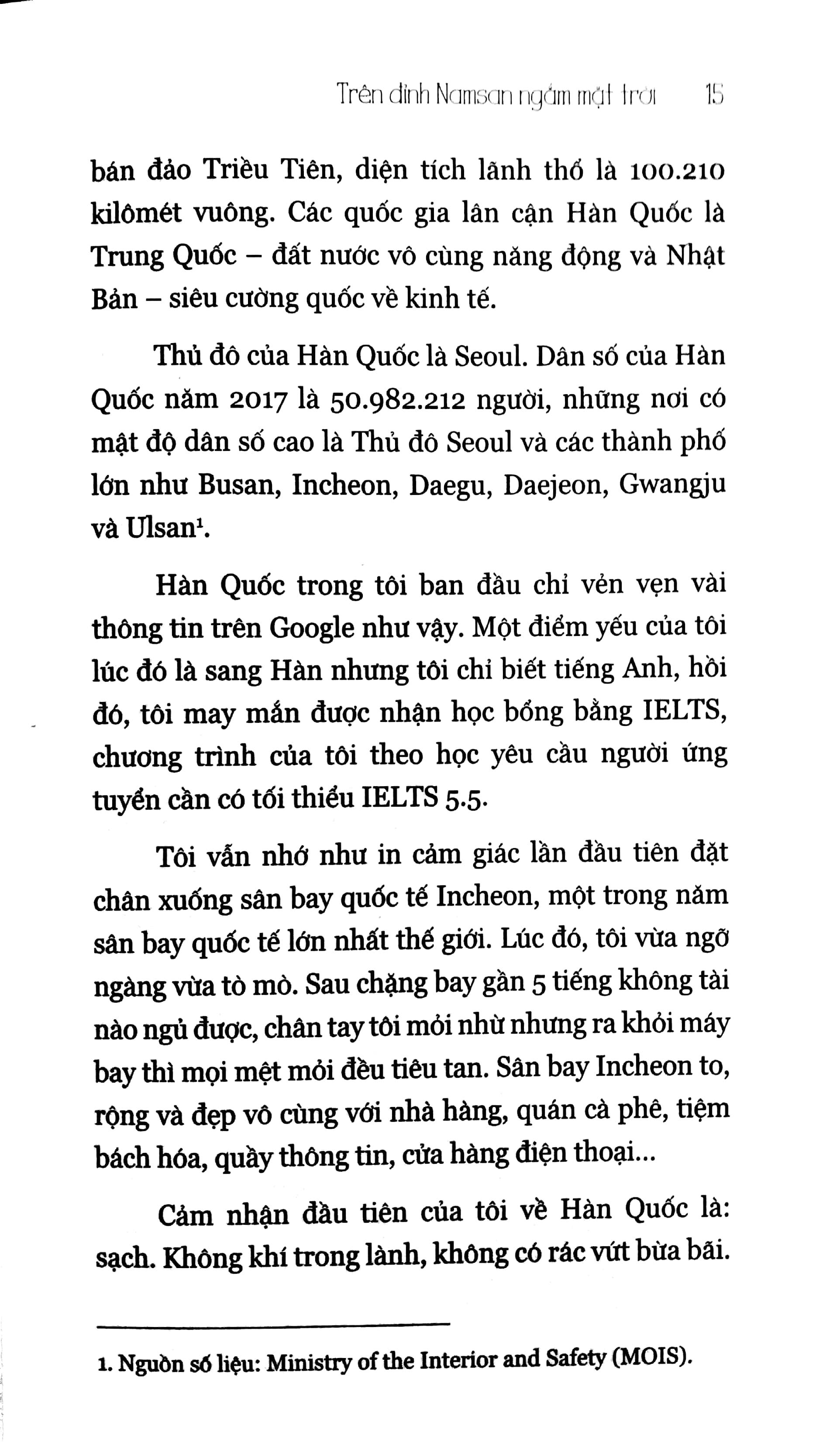 Trên Đỉnh Namsan Ngắm Mặt Trời là hành trình trải nghiệm, khám phá đất nước Hàn Quốc của một cô gái không-biết-tiếng-Hàn. Cuốn sách là trải nghiệm của cá nhân tác giả Hoài Thanh kể về cuộc sống, học tập khi ở Hàn Quốc. Ngoài ra còn có hệ thống các kiến thức, kỹ năng, kinh nghiệm khi tìm hiểu – làm hồ sơ – hoàn tất thủ tục – chuẩn bị hành trang đi du học. Nhận học bổng toàn phần để sang Hàn học tập bằng ngoại ngữ tiếng Anh, Hoài Thanh đã vấp phải nhiều rào cản để hòa nhập với môi trường sống, học tập của Hàn. Nhưng không vì vậy mà cô gái nhỏ nhắn nản chí bỏ cuộc, cô đã nỗ lực rất nhiều để từ một sinh viên không thể nghe hiểu được lời của giảng viên trở thành sinh viên tốt nghiệp xuất sắc, đứng đầu khoa Quan hệ Quốc tế của trường Đại học Quốc gia Kongju. Những tình huống éo le, dở khóc dở cười mà Hoài Thanh từng gặp phải là “sự thật” mà bất cứ du học sinh nào cũng có thể gặp phải khi các bạn chưa được trang bị nhiều kinh nghiệm sống, kỹ năng mềm.