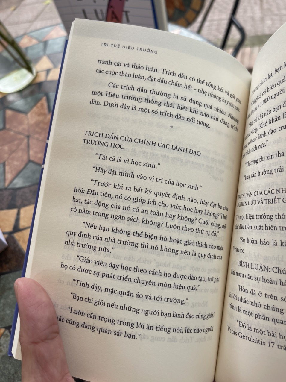 Cuốn sách này không hề lí thuyết: nó là những trải nghiệm thực tế và có tính gợi mở để các nhà lãnh đạo, quản lí trường học và bất kì ai mong muốn đứng vào hàng ngũ này kiểm chứng, suy nghĩ và vận dụng vào hoàn cảnh của mình để làm tốt hơn nữa vai trò song nhiệm của họ.