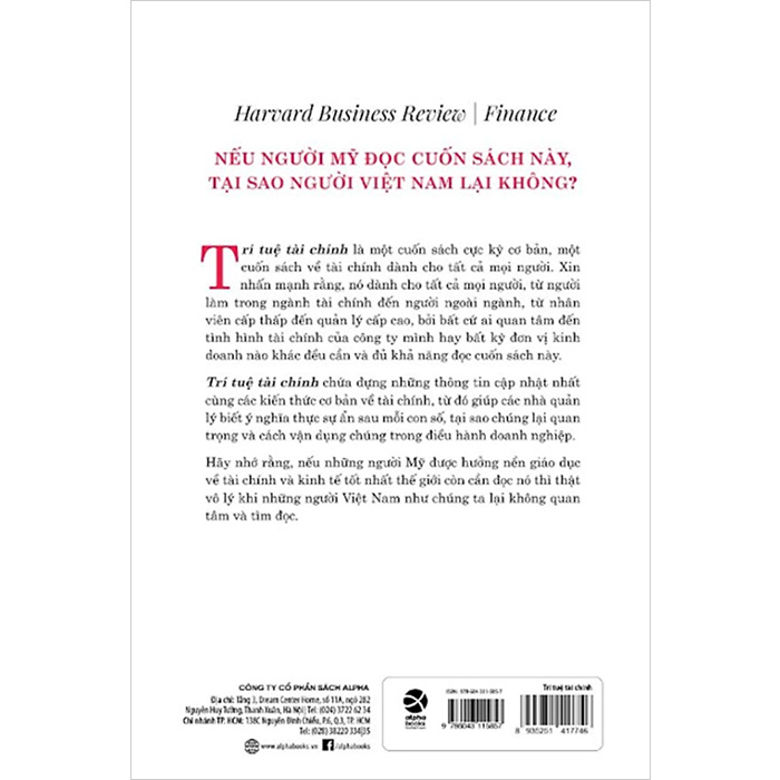 Là một nhà quản lý nhân sự, bạn phải sử dụng dữ liệu tài chính để đưa ra quyết định, phân bổ nguồn lực và lập ngân sách chi phí. Nhưng nếu giống như nhiều người làm ở vị trí này, bạn có thể cảm thấy không chắc chắn khi kết hợp tính toán tài chính vào công việc hằng ngày của mình. Và đây là lúc bạn cần đến Trí tuệ tài chính dành cho nhà quản lý nhân sự. Ba tác giả đã trình bày tất tần tật những hiểu biết cần thiết về tài chính dành riêng cho các chuyên gia nhân sự trong cuốn sách này.