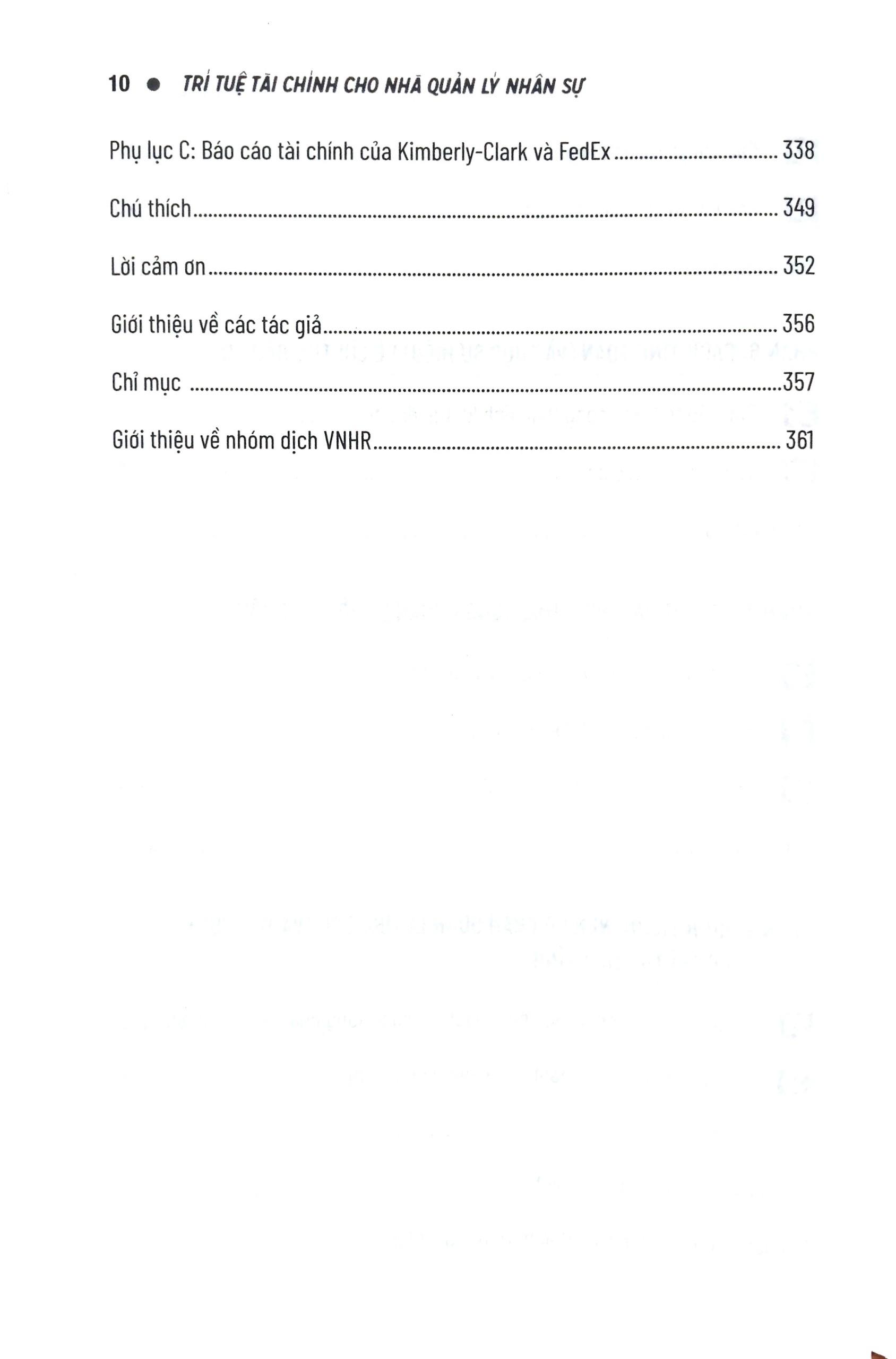 Là một nhà quản lý nhân sự, bạn phải sử dụng dữ liệu tài chính để đưa ra quyết định, phân bổ nguồn lực và lập ngân sách chi phí. Nhưng nếu giống như nhiều người làm ở vị trí này, bạn có thể cảm thấy không chắc chắn khi kết hợp tính toán tài chính vào công việc hằng ngày của mình. Và đây là lúc bạn cần đến Trí tuệ tài chính dành cho nhà quản lý nhân sự. Ba tác giả đã trình bày tất tần tật những hiểu biết cần thiết về tài chính dành riêng cho các chuyên gia nhân sự trong cuốn sách này.