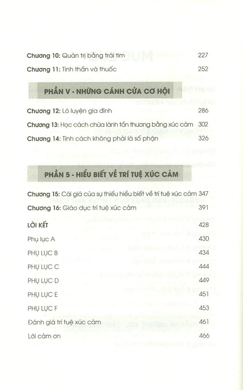 Trong sách, Daniel Goleman chỉ ra một số yếu tố khiến người IQ cao có thể gặp lúng túng trong công việc, còn người IQ thấp hơn lại đạt hiệu suất đáng kinh ngạc. Đó là sự tự ý thức, tính kỷ luật tự giác, sự đồng cảm, và chúng không bị mặc định từ khi sinh ra. Trí tuệ cảm xúc được bồi đắp bởi những trải nghiệm từ khi còn nhỏ, nhưng nó cũng có thể được nuôi dưỡng và tăng cường trong quá trình mỗi cá nhân trưởng thành, đem đến lợi ích cho sức khỏe, công việc và cả các mối quan hệ của họ.