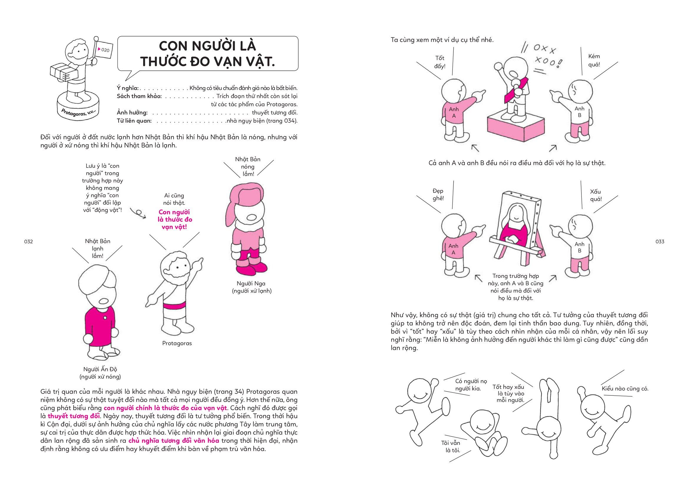 “Cuốn sách không phải là một cuốn giáo trình lịch sử triết học, dù bạn đọc hoàn toàn có thể theo dõi tiến trình vận động của triết học theo trục thời gian, khởi đầu từ các bậc tiền nhân thời cổ đại cho đến những tên tuổi đang được khai thác, bàn luận nhiều trong triết học đương đại như Jacques Derrida, Michel Foucault, Gilles Deleuze hay Judith Butler. Cuốn sách giúp các bạn hình dung về lịch sử triết học như những đối thoại không ngừng xung quanh các câu hỏi dường như không có câu trả lời cuối cùng, nhưng chính vì thế, chúng thôi thúc ta phải tiếp tục suy tư, nghiền ngẫm và chất vấn. Nỗ lực tư duy này xác nhận sự tồn tại của chúng ta với tư cách là con người, như mệnh đề nổi tiếng của triết gia người Pháp, René Descartes (1596 – 1650): “Tôi tư duy nên tôi tồn tại.” (Tiến sĩ Trần Ngọc Hiếu)