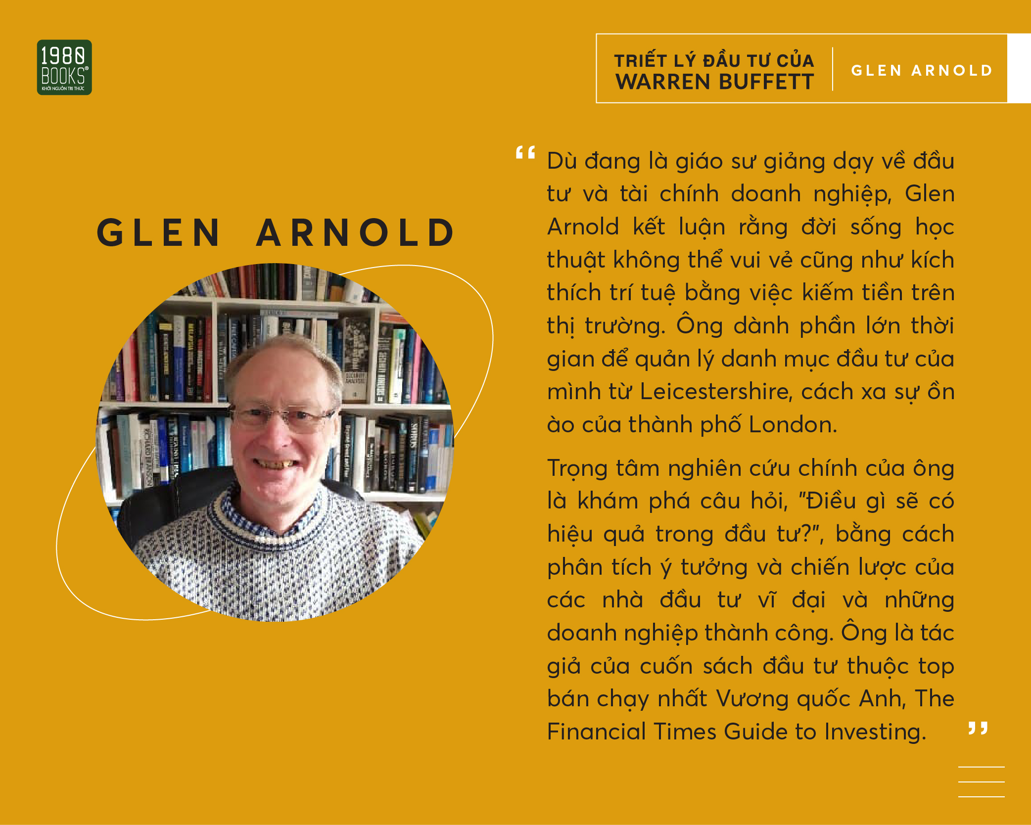 Cuốn sách “Triết lý đầu tư của Warren Buffett” của Glen Arnold phân tích những thương vụ mà Warren Buffett đã thực hiện sau khi kiếm được 100 triệu đô la đầu tiên, cụ thể là 10 vụ thâu tóm đã giúp ông chính thức trở thành một tỷ phú và bước vào ngôi đền của những huyền thoại. Trong cuốn sách, Glen Arnold tập trung vào câu hỏi tại sao: