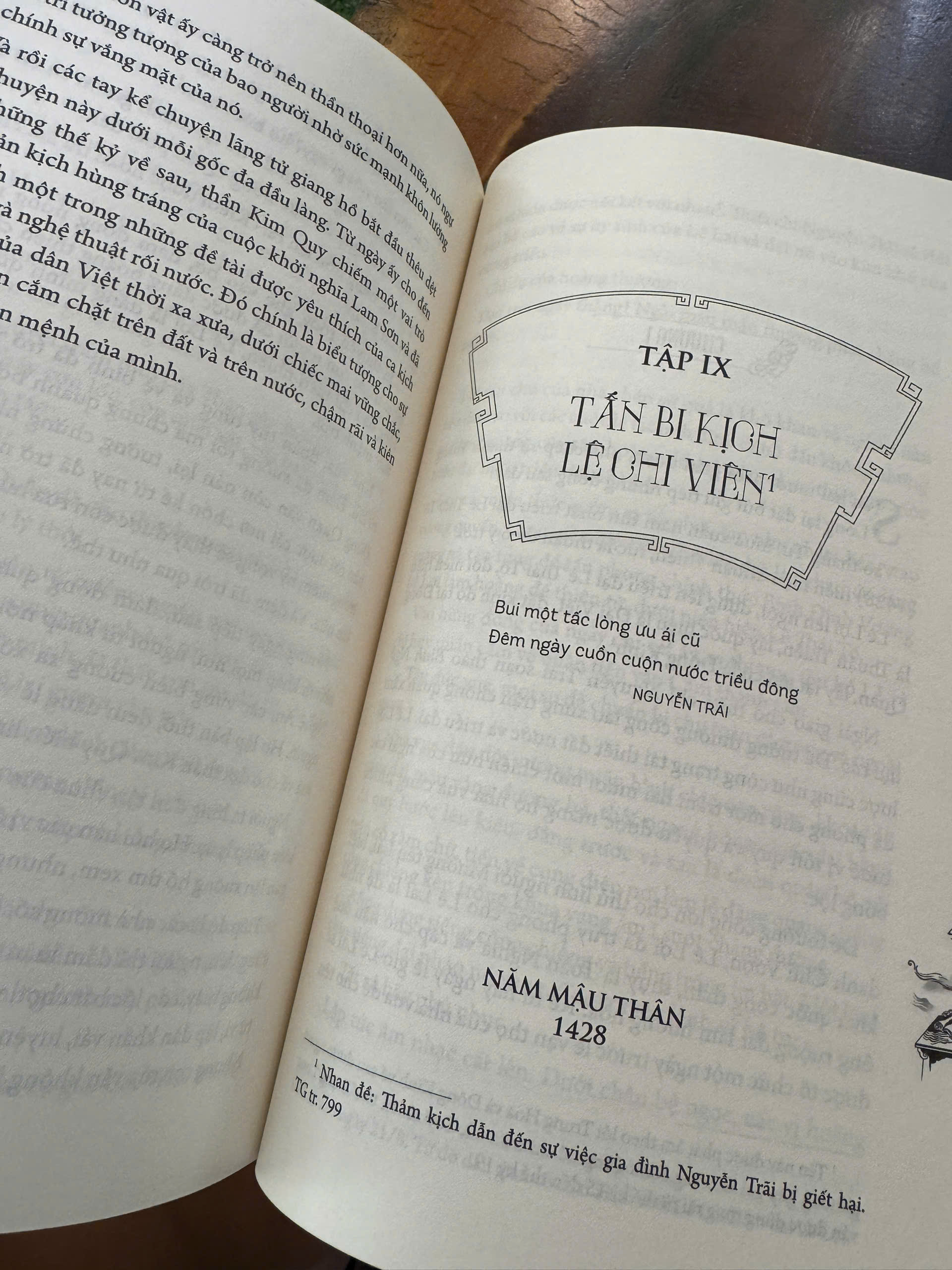 Vượt lên khuôn khổ của một cuốn tiểu thuyết lịch sử thông thường - với độ dày gần 1200 trang - tác phẩm đồ sộ này gồm hai quyển, chia thành 9 tập nhỏ và được xem là một thiên sử thi bằng văn chương, không chỉ “phục hiện được cuộc đời và sự nghiệp của Nguyễn Trãi” mà còn có bức tranh toàn cảnh của Đại Việt thế kỷ XV - một giai đoạn huy hoàng nhưng cũng đầy bi tráng trong lịch sử dân tộc. Đó là bức tranh vô cùng chân thực và sâu sắc về những ngày tháng cuối thời Trần đang độ suy tàn; những dự định dựng xây triều mới của tướng quân Lê Quý Ly; những cuộc bình định phương Nam; sự gắn bó mật thiết giữa Nguyễn Trãi - Lê Lợi trong cuộc khởi nghĩa Lam Sơn và chiến thắng của quân dân Đại Việt trước quân Minh; những ngày hoảng loạn của Vương Thông cùng bè lũ xâm lược; rồi những xung đột lợi ích và âm mưu của bọn gian thần trong triều đình nhà Lê sau chiến thắng; nỗi đau đáu của Nguyễn Trãi về vận nước trong những tháng ngày ông ẩn cư ở Côn Sơn và đặc biệt là tấn bi kịch vườn Lệ Chi đầy oan khiên khiến gia đình Nguyễn Trãi bị kết án tru di tam tộc…