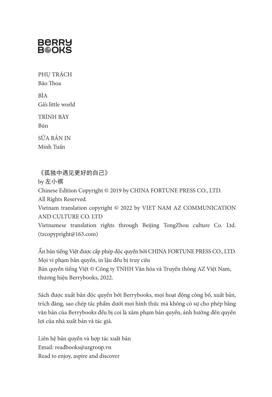 Cuốn sách này sẽ chia sẻ với bạn đọc cách để đối mặt với sự hoang mang, cách thoát ra khỏi cô đơn và khó khăn, cách chuyển hóa cô đơn thành dưỡng chất cho sự trưởng thành, từ đó gặp được phiên bản tốt đẹp nhất của bản thân m.ình.