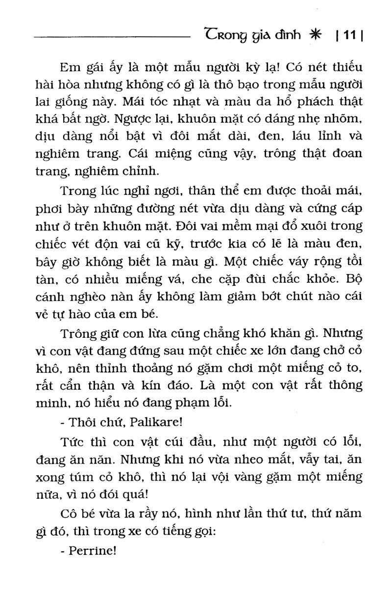 TRONG GIA ĐÌNH là câu chuyện kể về cô bé Perrine. Sớm mồ côi cha mẹ, Perrine đã từng một mình giữa rừng sâu, trong đêm tối với bao nỗi sợ hãi. Mệt mỏi, đói