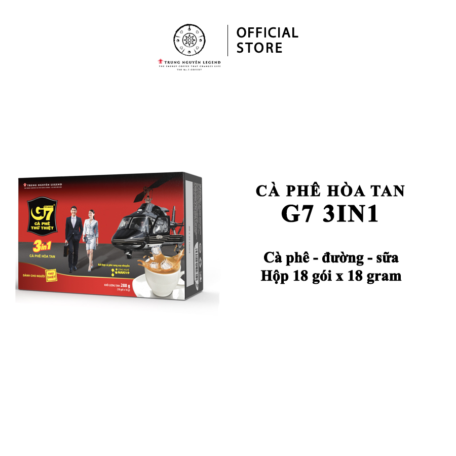 Mua tại TiktokCÀ PHÊ HÒA TAN G7 3IN1 – HỘP 18 GÓI X 16GR BỘ SẢN PHẨM BAO GỒM: Hộp 18 gói dài x 16gr ĐẶC ĐIỂM NỔI BẬT: