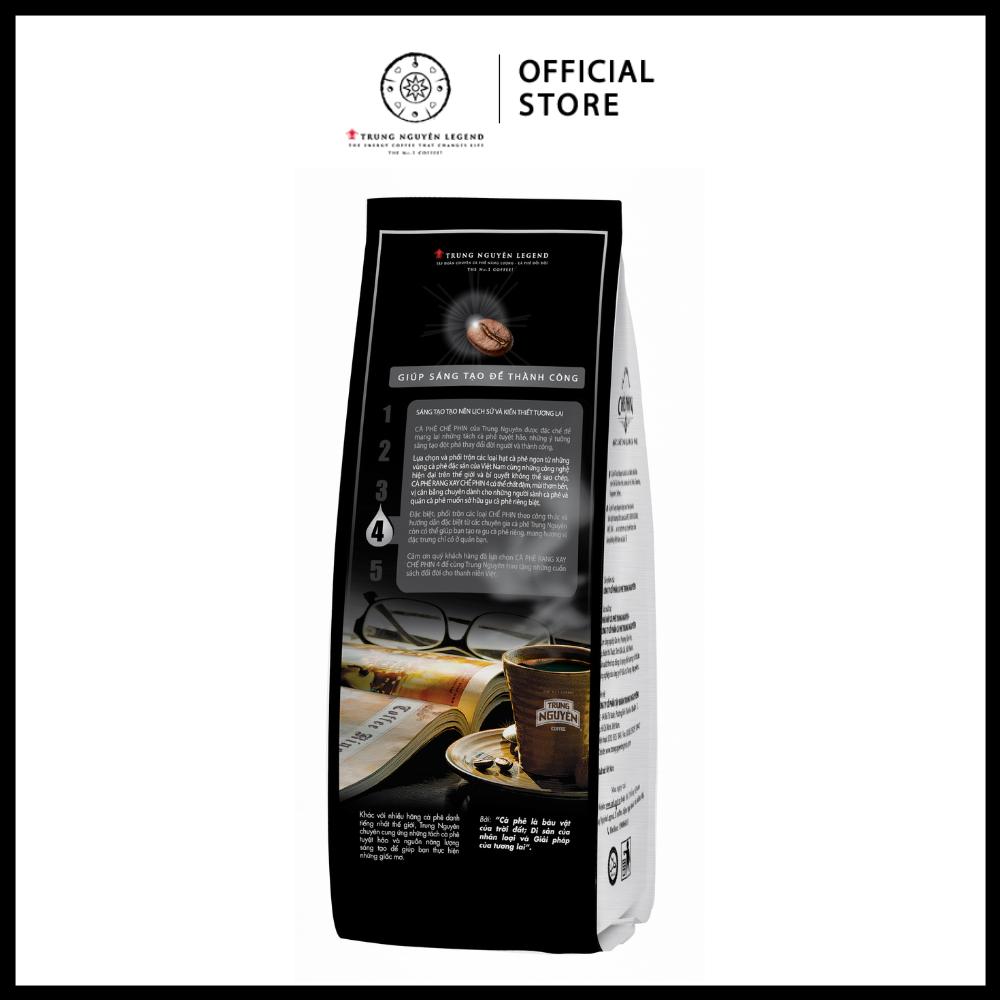 TRUNG NGUYÊN LEGEND OFFICIAL TRÂN TRỌNG GIỚI THIỆU SẢN PHẨM CÀ PHÊ RANG XAY SÁNG TẠO 4 - GÓI 340GR THÔNG TIN CHUNG: - Thương hiệu: Trung Nguyên Legend - Dòng sản phẩm: Sáng