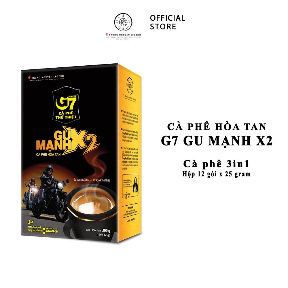 CÀ PHÊ HÒA TAN G7 3IN1 GU MẠNH – HỘP 12 GÓI X 25GR BỘ SẢN PHẨM BAO GỒM: Hộp 12 gói x 25gr ĐẶC ĐIỂM NỔI BẬT: - Cà phê Gu mạnh