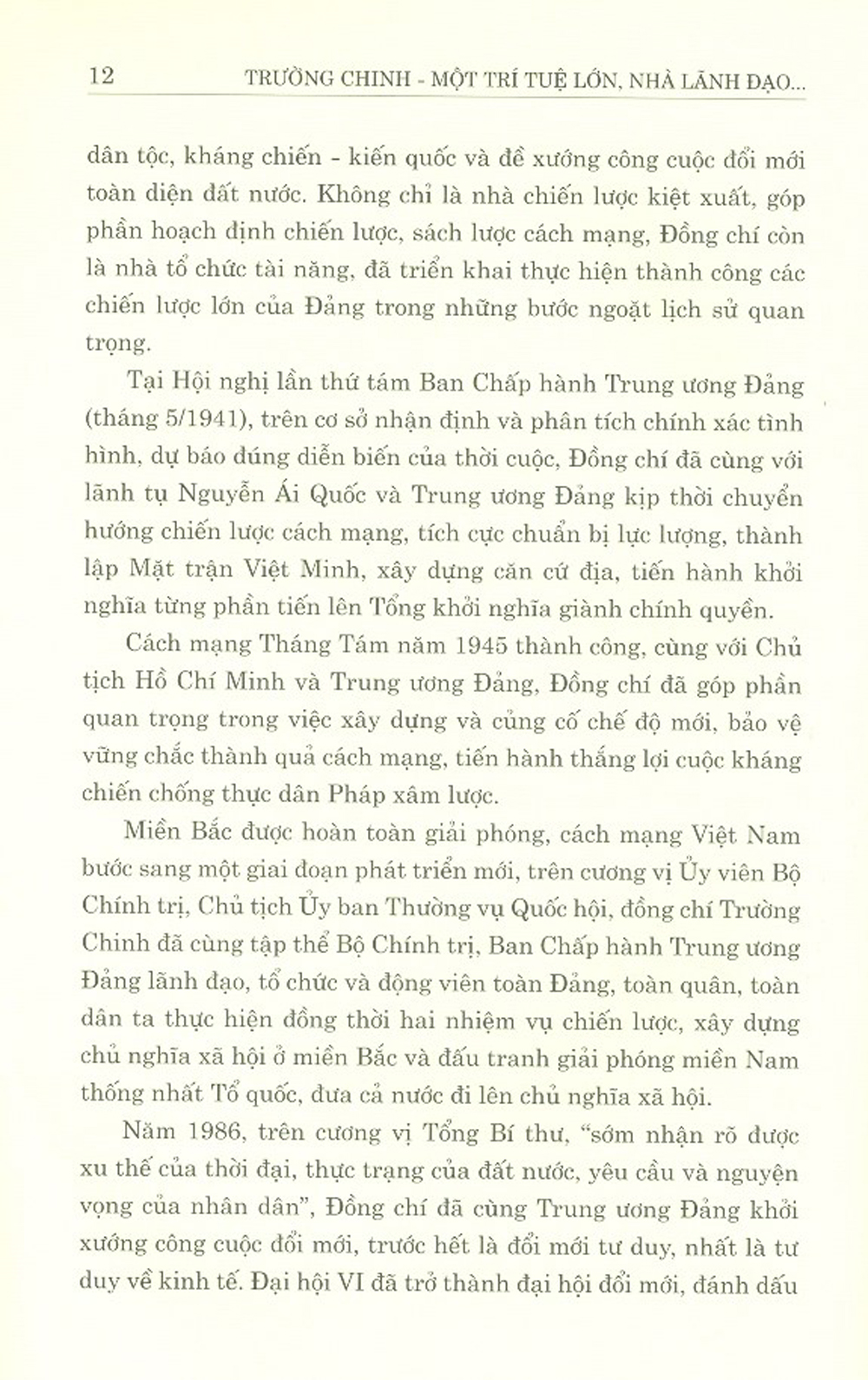 Mua tại TiktokSách tập hợp các bài viết của các đồng chí lãnh đạo Đảng và Nhà nước, các nhà hoạt động khoa học, văn hóa, xã hội và những người làm việc gần gũi với đồng chí Trường Chinh qua các thời kỳ về những cống hiến to lớn của đồng chí Trường Chinh đối với Đảng và dân tộc; những kỷ niệm sâu sắc về đồng chí Trường Chinh; một số tác phẩm tiêu biểu của đồng chí.