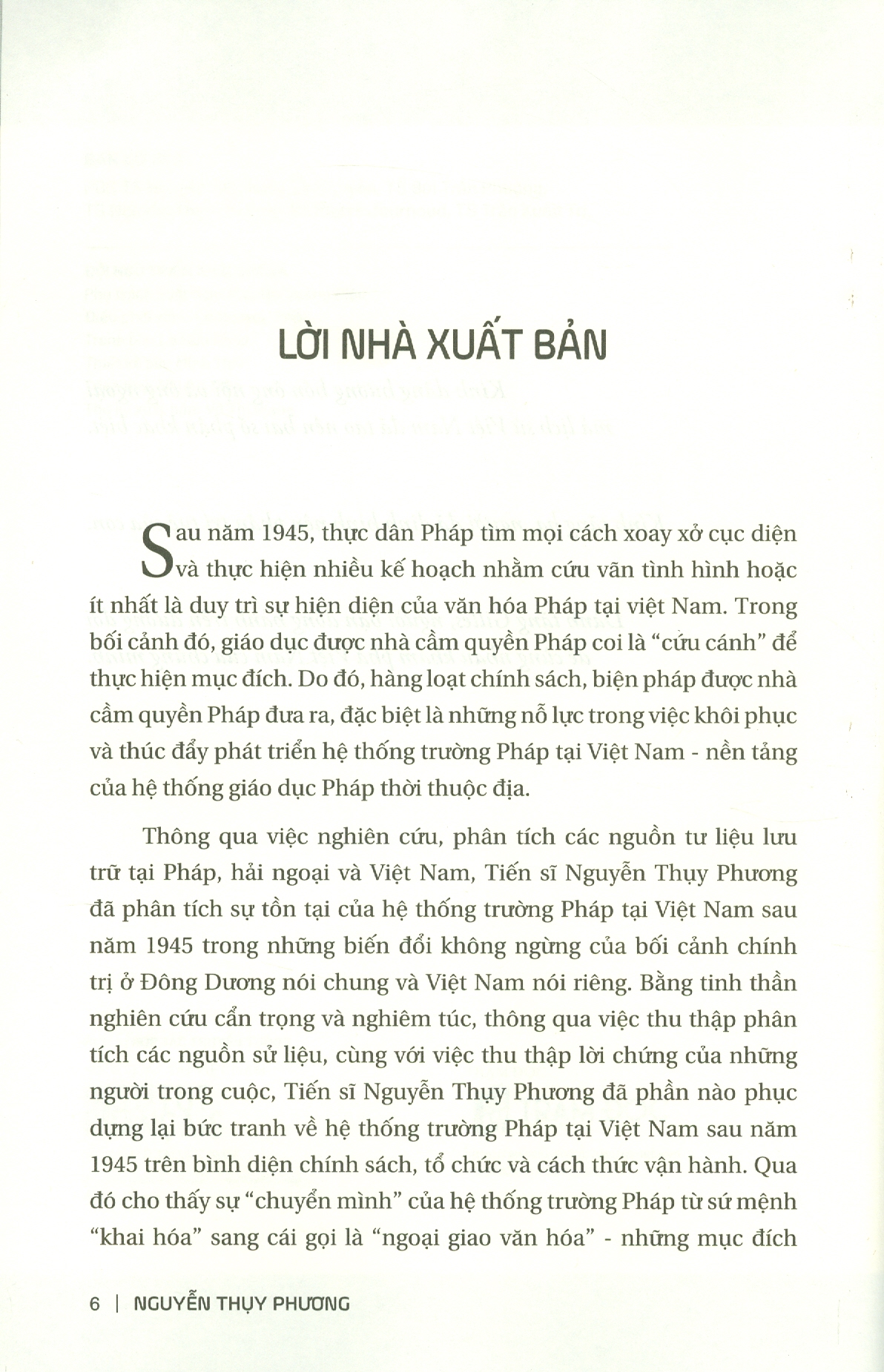 Cuốn sách này, bắt nguồn từ luận án tiến sỹ của tác giả, đã hoàn thành vai trò của mình là làm sống lại thiên truyện về nền giáo dục Pháp tại Việt Nam trong ba thập niên bản lề của lịch sử đất nước này trong thế kỷ 20 (1945-1975).