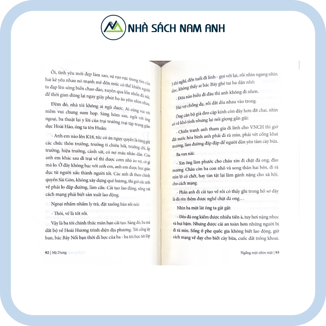 Ngẩng mặt nhìn mặt là một truyện dài được kể bằng quan sát một cô bé mới lớn, nhưng đây không phải truyện cho tuổi mới lớn, vì nó có tính xã hội rộng.
