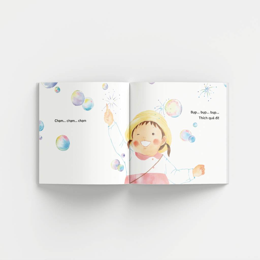 Mặc bộ váy yêu thích, xỏ đôi giày mới cùng đi dạo dưới trời xuân nào. Thời tiết đẹp quá. Tận hưởng hơi thở nhẹ nhàng của mùa xuân thôi. Lon ton…lon ton…lon ton. A, hoa anh đào nở đẹp quá. A, nhiều hoa cỏ mềm mại chưa này. Ồ, bong bóng này. Thời tiết dễ chịu thật, còn nghe được cả tiếng gió nữa này.