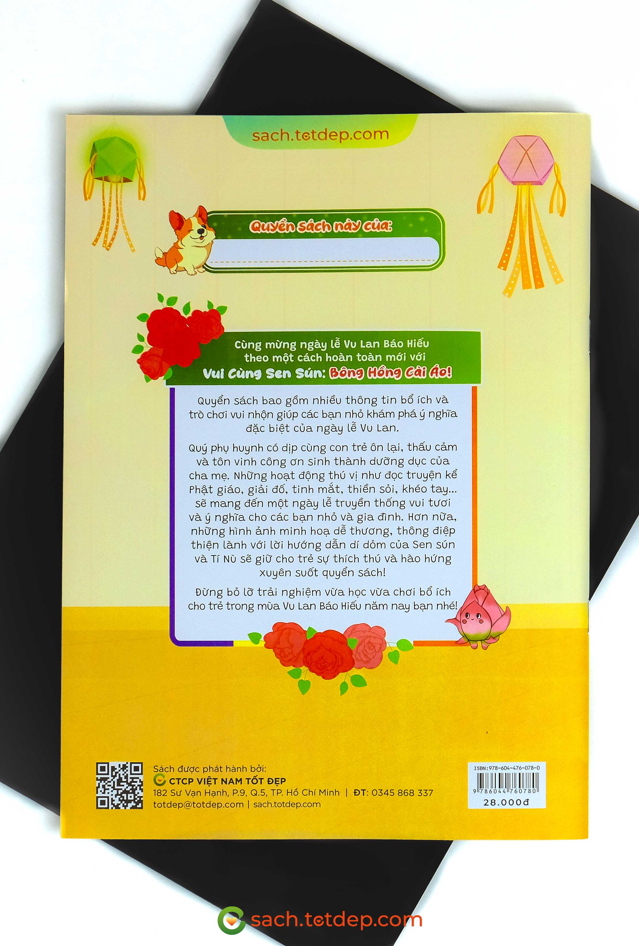 Vui Cùng Sen Sún Bông Hồng Cài Áo bao gồm nhiều hoạt động giúp trẻ hiểu, yêu và biết ơn cha mẹ thông qua những câu chuyện thú vị và những thử thách vui nhộn. Những hoạt động thú vị như đọc truyện kể Phật giáo, giải đố, tinh mắt, thiền sỏi, khéo tay, … sẽ mang đến một ngày lễ truyền thống vừa vui tươi vừa ý nghĩa cho các bạn nhỏ và gia đình. Hơn nữa, những hình ảnh minh hoạ dễ thương, thông điệp thiện lành cùng với lời hướng dẫn dí dỏm của Sen sún và Tí Nù sẽ giữ cho trẻ sự thích thú và hào hứng xuyên suốt quyển sách!
